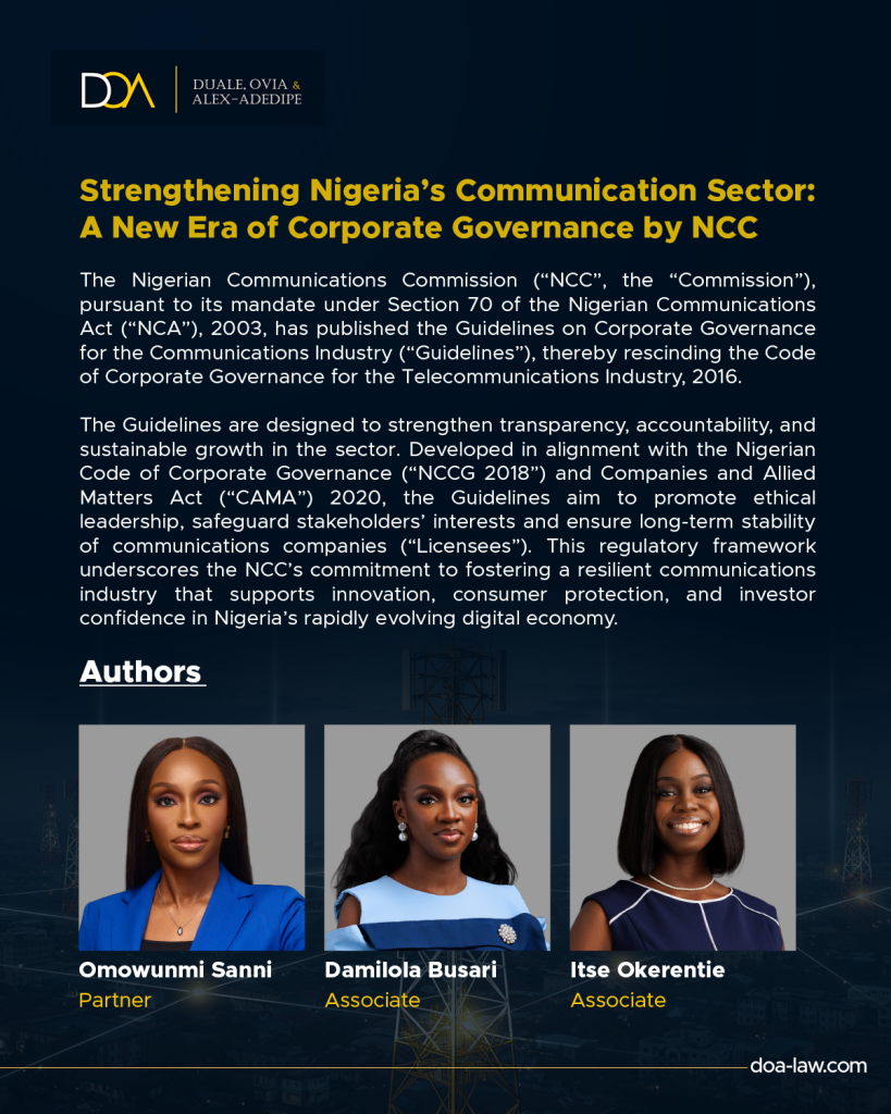 Developed in line with the Nigerian Code of Corporate Governance 2018 and CAMA 2020, the Guidelines set a higher bar for board structure, risk management, stakeholder engagement, and compliance reporting. They reflect the NCC’s commitment to building a resilient communications sector that inspires investor confidence, protects consumers, and supports sustainable innovation in Nigeria’s digital economy.