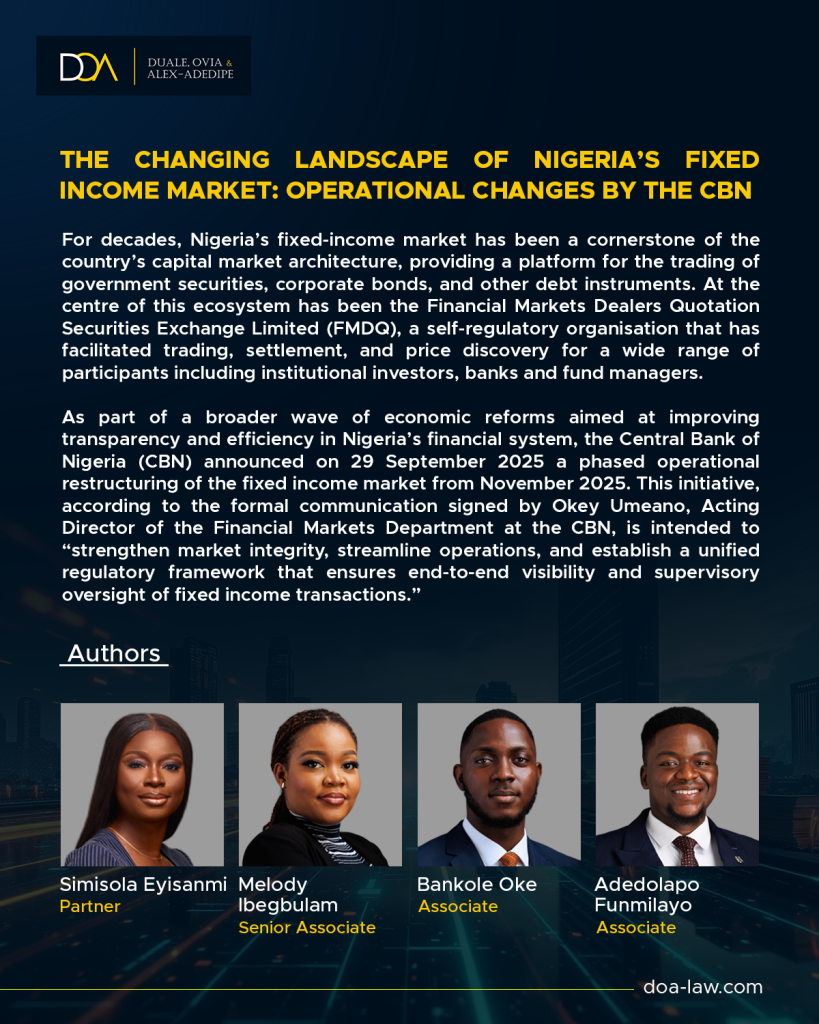 As part of a broader wave of economic reforms aimed at improving transparency and efficiency in Nigeria’s financial system, the Central Bank of Nigeria (CBN) announced on 29 September 2025 a phased operational restructuring of the fixed income market from November 2025. This initiative, according to the formal communication signed by Okey Umeano, Acting Director of the Financial Markets Department at the CBN, is intended to “strengthen market integrity, streamline operations, and establish a unified regulatory framework that ensures end-to-end visibility and supervisory oversight of fixed income transactions.”