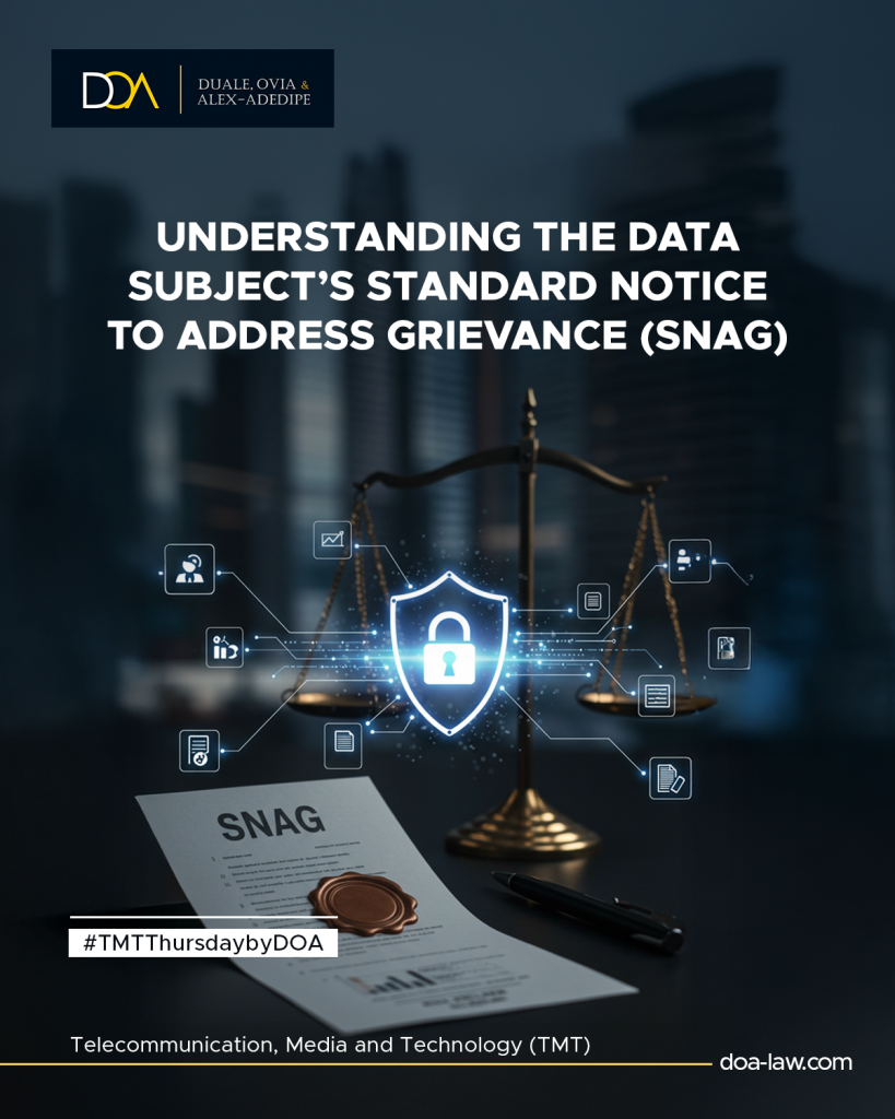 The Nigeria Data Protection Act (NDPA) 2023 recognises the right of data subjects to lodge complaints with the Nigeria Data Protection Commission (NDPC) where they believe their privacy rights have been violated. However, in addition to this statutory right, the NDPC, exercising its power to make regulations for the protection of personal data under Section 61(1)-(2)(b) of the NDPA, has introduced an additional mechanism under the General Application and Implementation Directive (GAID) regarded as the Data Subject’s Standard Notice to Address Grievance (SNAG).